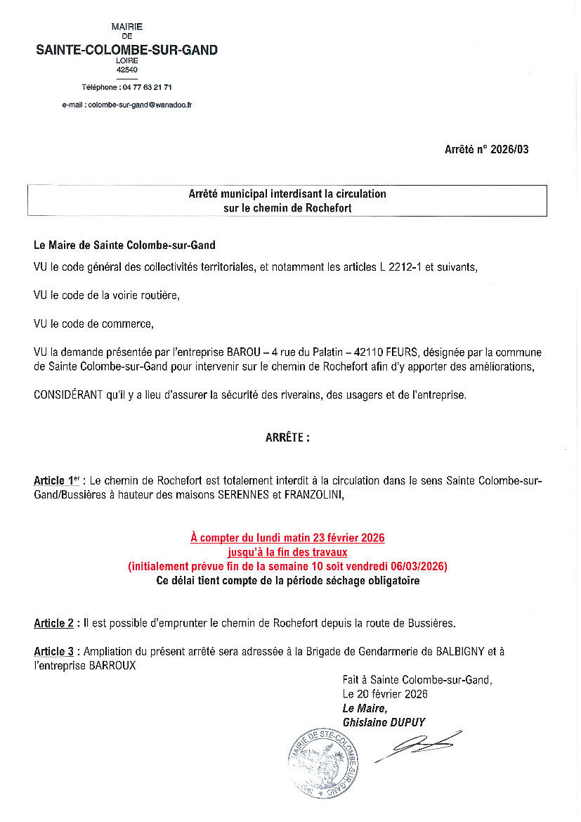 Votre mairie / Actualités / Chemin de Rochefort fermé