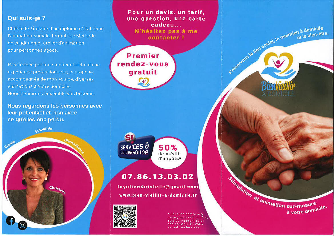 Christelle FUYATIER, titulaire d'un diplôme d'état dans l'animation sociale, formatrice Méthode de valdation et atelier d'animation pour personnes âgées, propose diverses animations à votre domicile