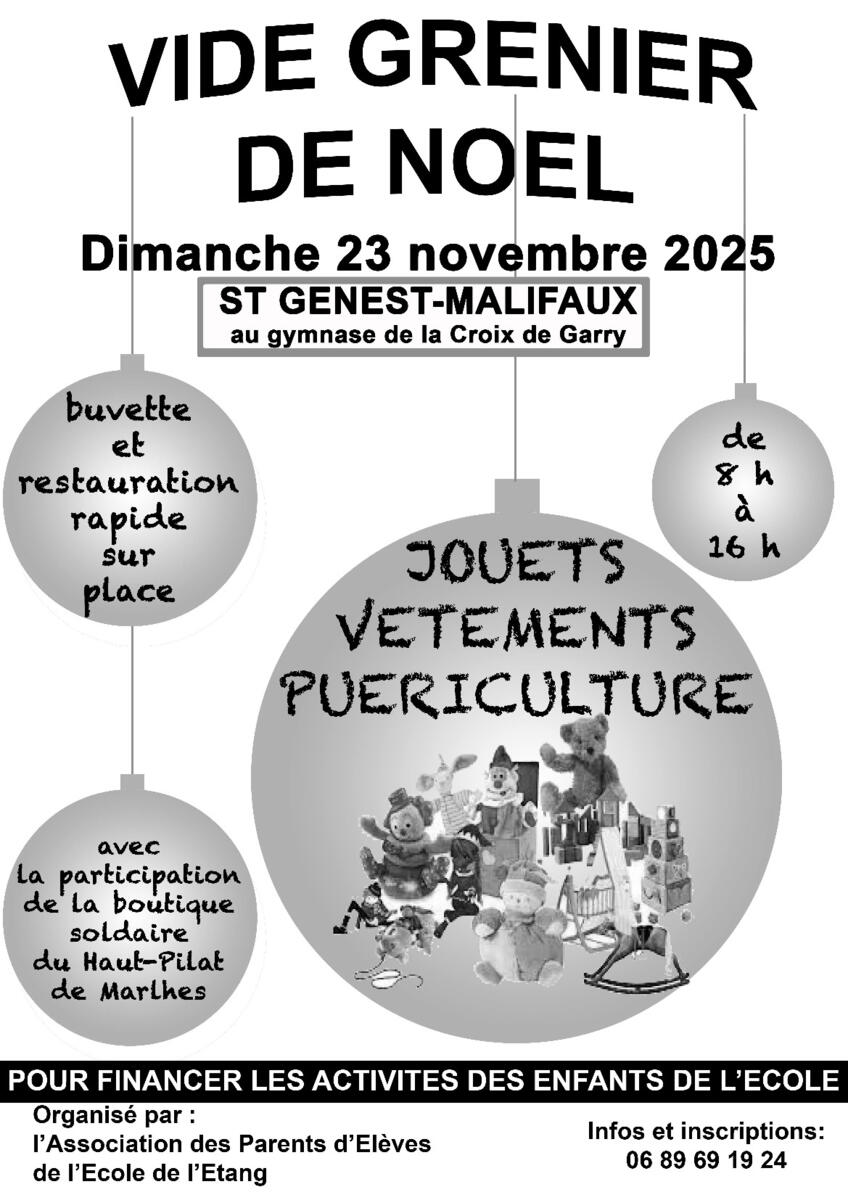 L'APE de l'école de l'Étang de Saint-Genest-Malifaux organise son vide grenier de Noël