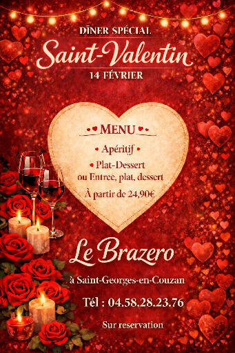 A l'occasion de la Saint Valentin le Brazero vous propose un menu spécial :