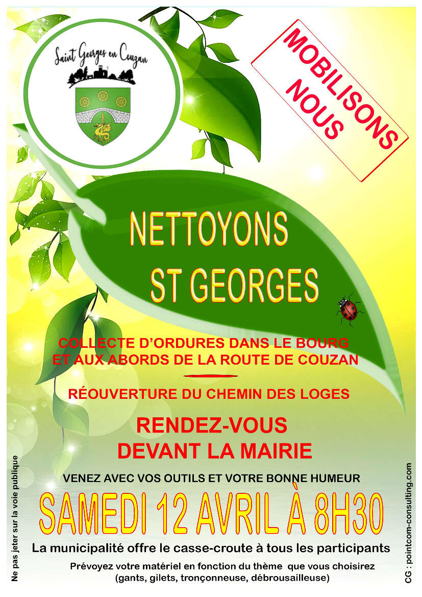NETTOYONS ST GEORGES 25-04-01 Rendez vous samedi 12 avril à 8h30 devant la mairie pour une collecte d'ordures dans le bourg et la réouverture du chemin des loges