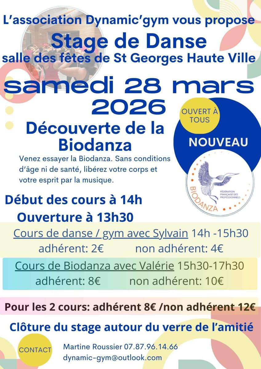 STAGE DE DANSE 26-03-24 DYNAMIC'GYM propose un stage de danse. Source : Mairie de Saint-Georges-Haute-ville