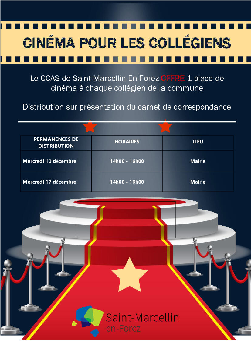 Comme chaque année, le CCAS (Centre Communal d'Action Sociale) de Saint-Marcellin-en-Forez offre une place de cinéma à chaque collégien Marcellinois.