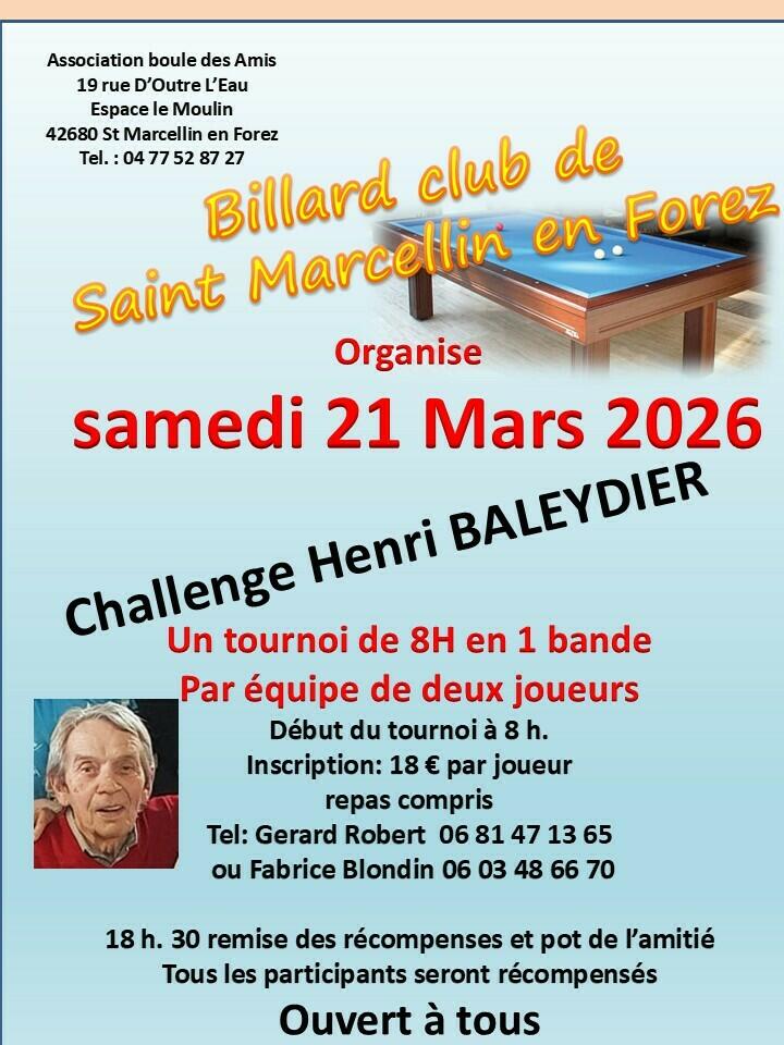 TOURNOI DE BILLARD SAMEDI 21 MARS