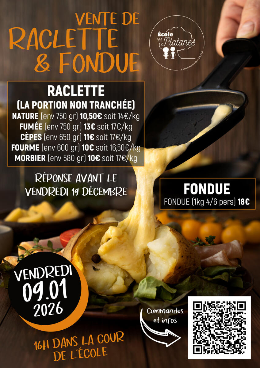 🧀🎉 VENTE DE RACLETTE & FONDUE à l'école Les Platanes 🎉🧀