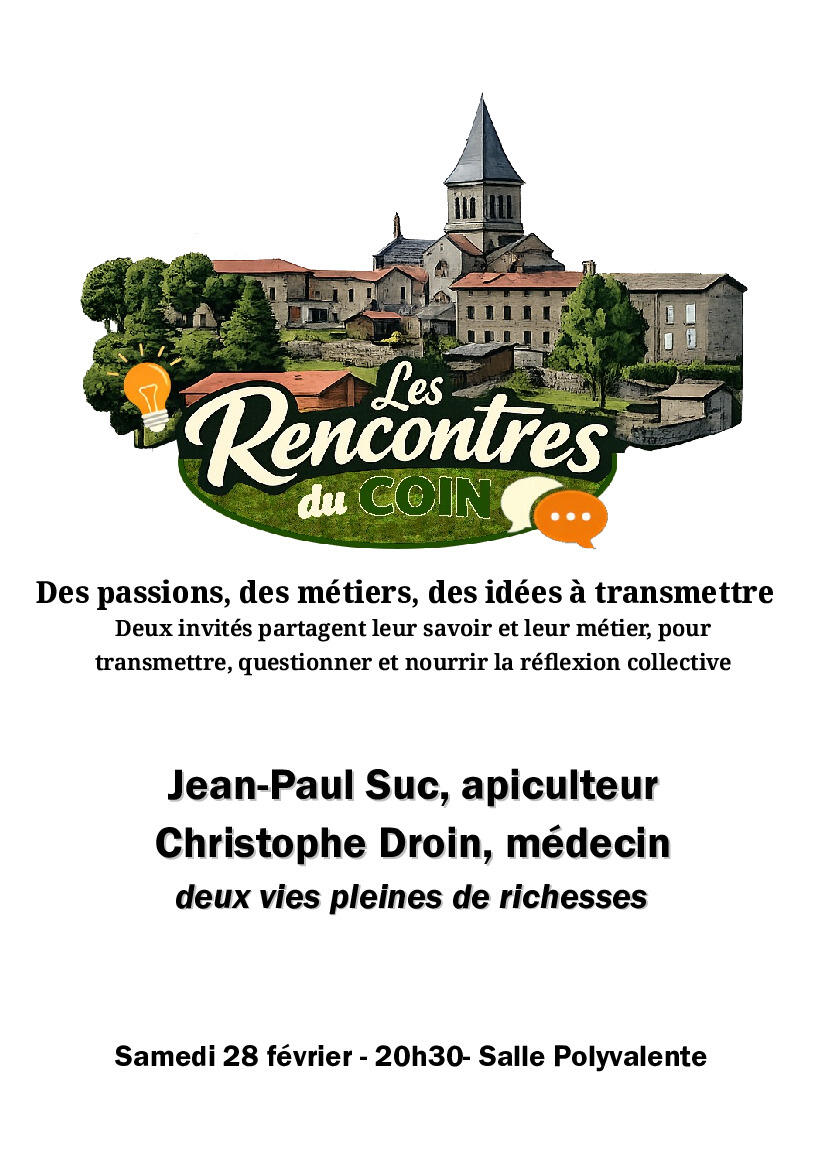 Les rencontres du Coin 26-02-26 Samedi 28 février à 20h30. Salle polyvalente Source : Mairie de Saint-Régis-du-Coin
