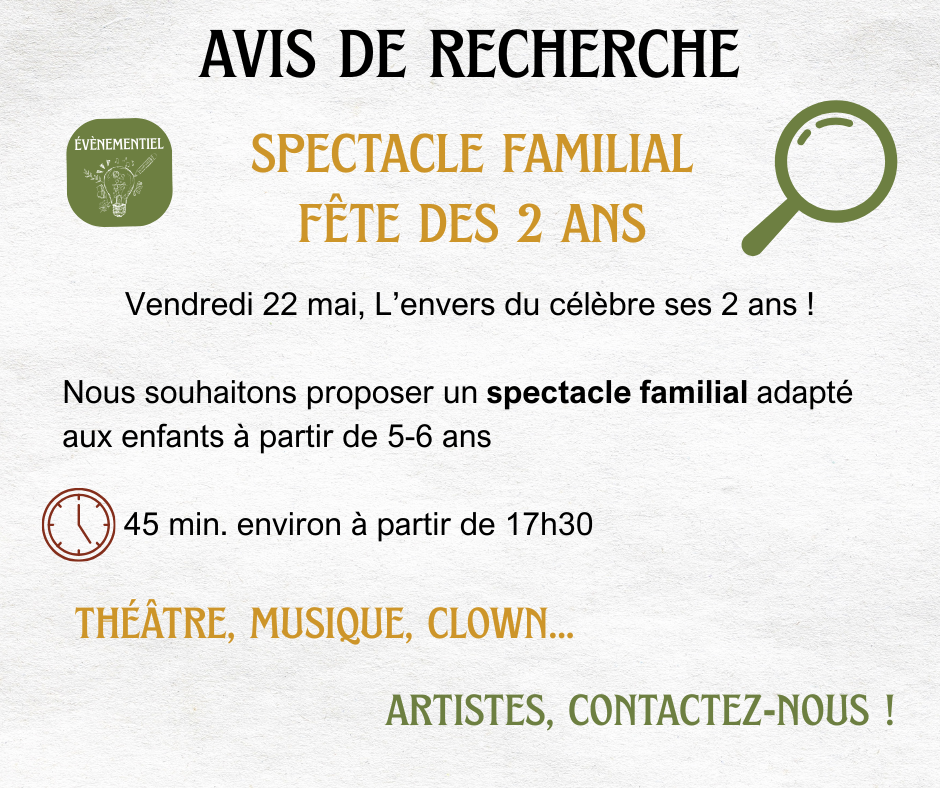 🔎AVIS DE RECHERCHE - Spectacle familial