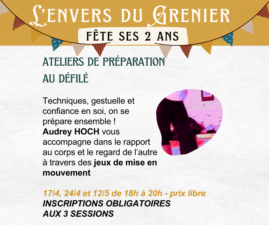 👯♂Vendredi 17 de 18h à 20h atelier de préparation au défilé de la fête des 2 ans du Grenier