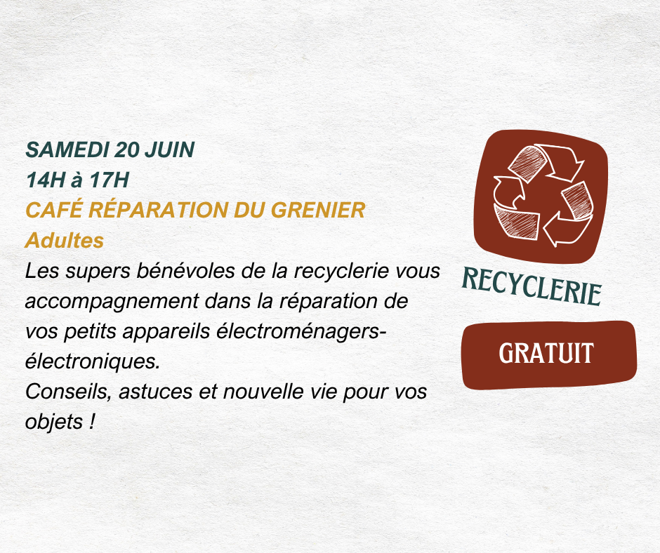 Les supers bénévoles de la recyclerie vous accompagnement dans la réparation de vos petits appareils électroménagers-électroniques. Conseils, astuces et nouvelle vie pour vos objets ! Pour adultes Gratuit