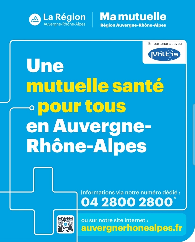 Comme vous avez pu le lire dans l'article sur le bulletin municipal, pour améliorer l'accès aux soins, renforcer le pouvoir d'achat des habitants d'auvergne Rhône-Alpes et répondre aux priorités de santé publique, la région lance sa première mutuelle santé régionale.