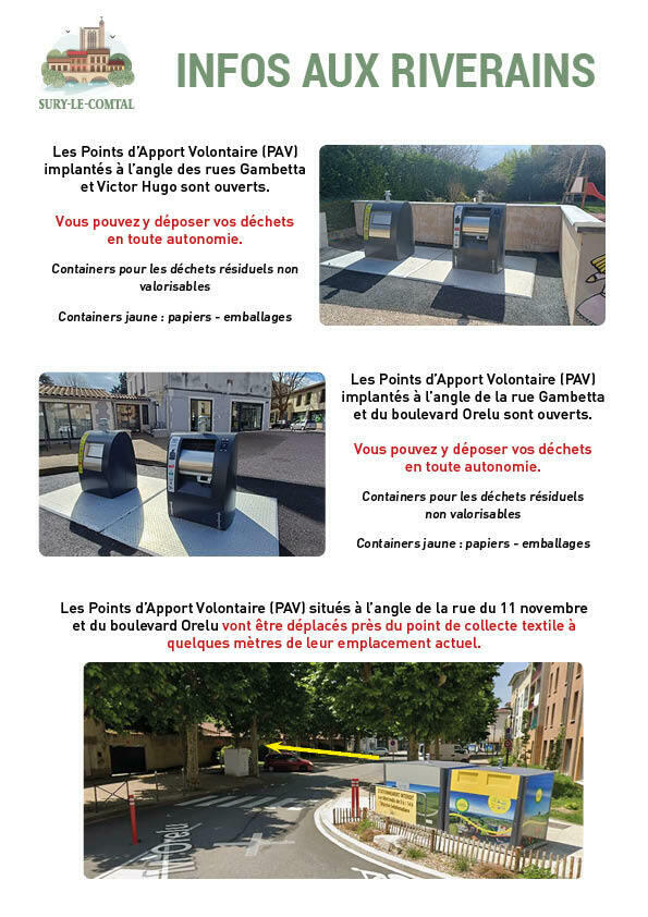 Les Points d’Apport Volontaire (PAV) situés à l’angle de la rue du 11 novembre et du boulevard Orelu vont être déplacés près du point de collecte textile à quelques mètres de leur emplacement actuel.
