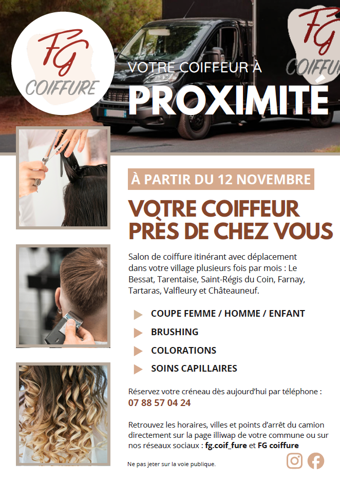 Les jours et lieux de passage seront consultables sur les réseaux sociaux de FG COIFFURE.