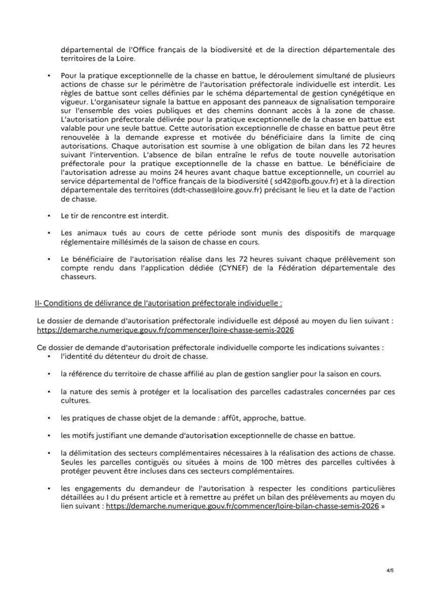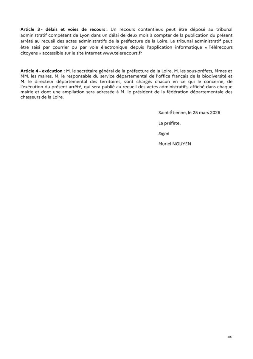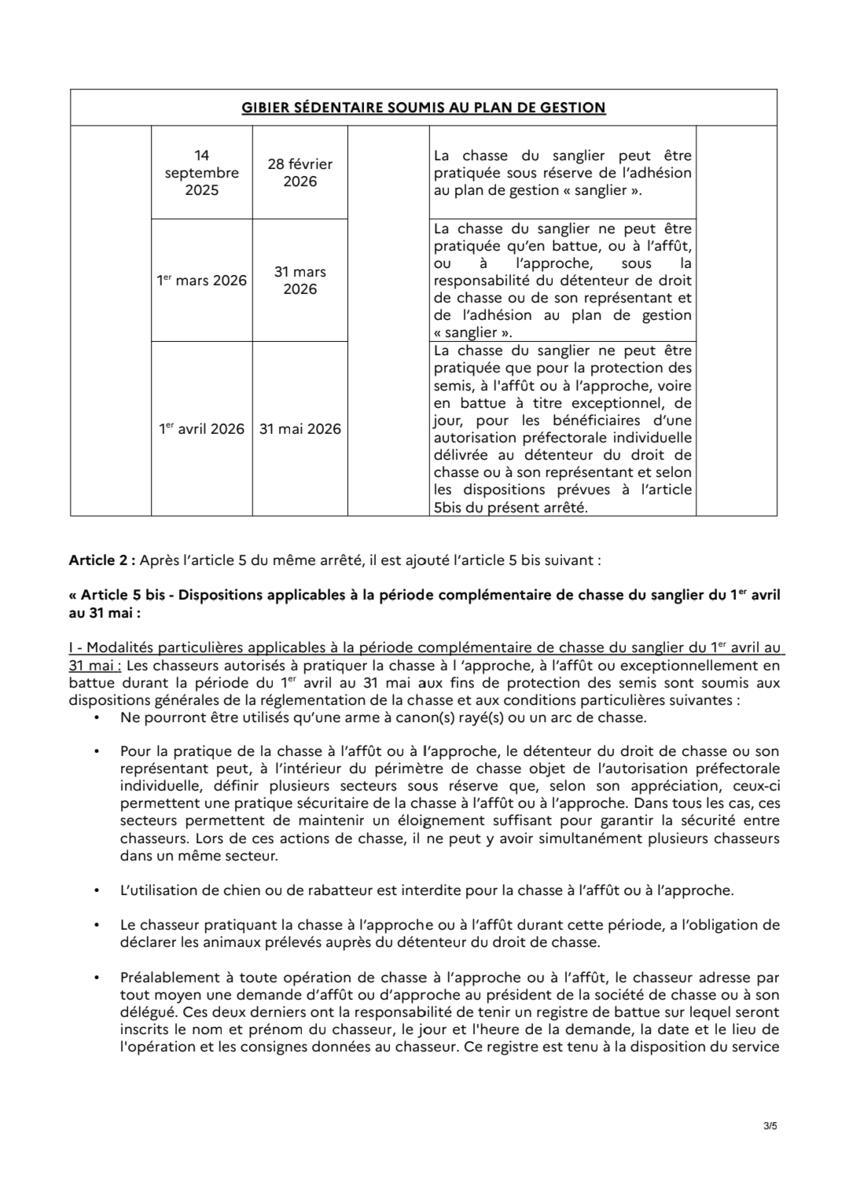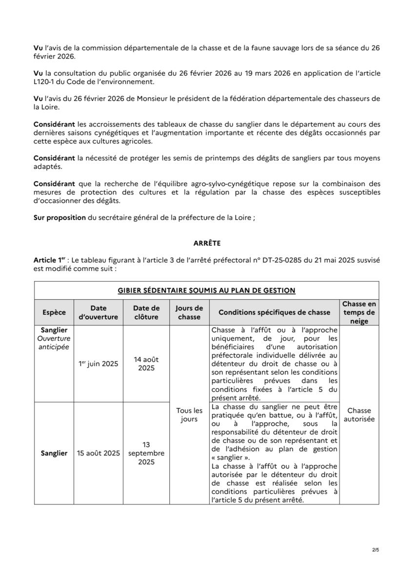 Modification des dates d'ouverture de la chasse.