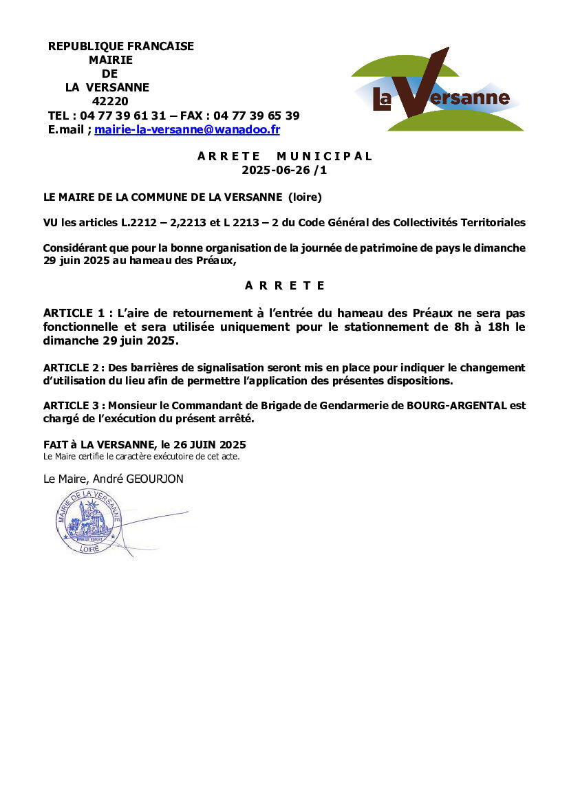 Votre mairie / Actualités / ARRETE DE CIRCULATION 29 JUIN 2025
