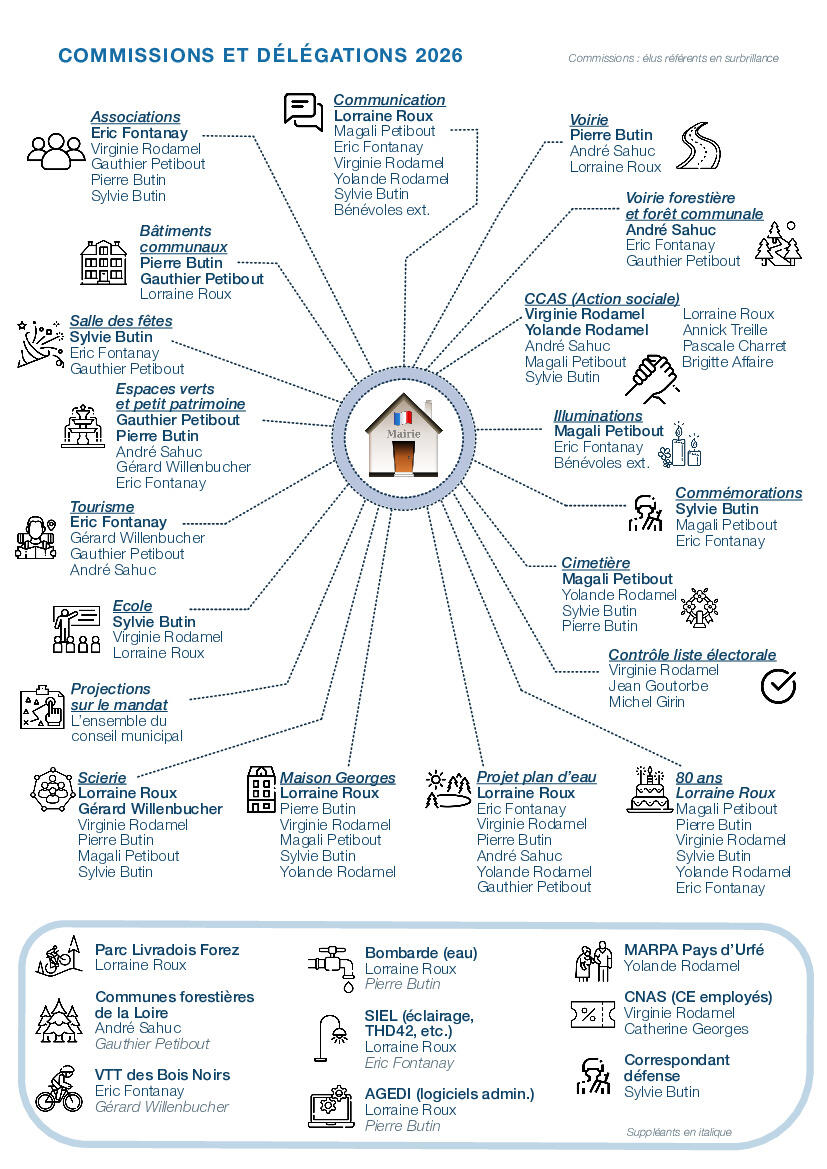 Vous trouverez ci-dessous l'organigramme des commissions et la répartition des élus. N'hésitez pas à contacter le ou les référents si vous avez des questions ou des remarques à formuler sur un sujet.