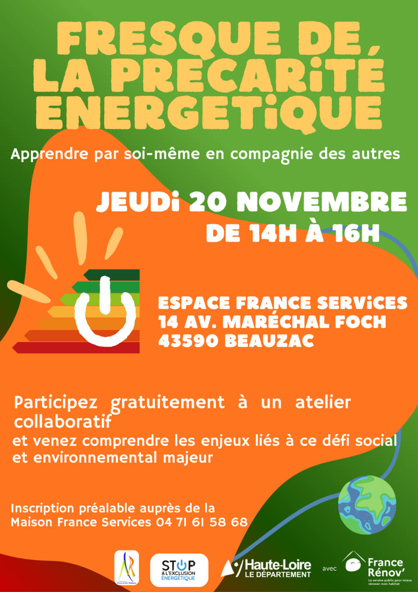 Contribuez Ă la fresque de la prĂ©caritĂ© Ă©nergĂ©tique le jeudi 20 novembre 2025 (14h-16h) Ă Â la Maison France Services de Beauzac !Â