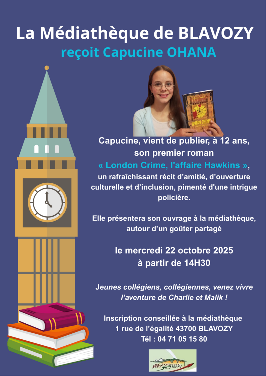 Mercredi 22 octobre à partir de 14H30, la médiathèque reçoit Capucine Ohana.