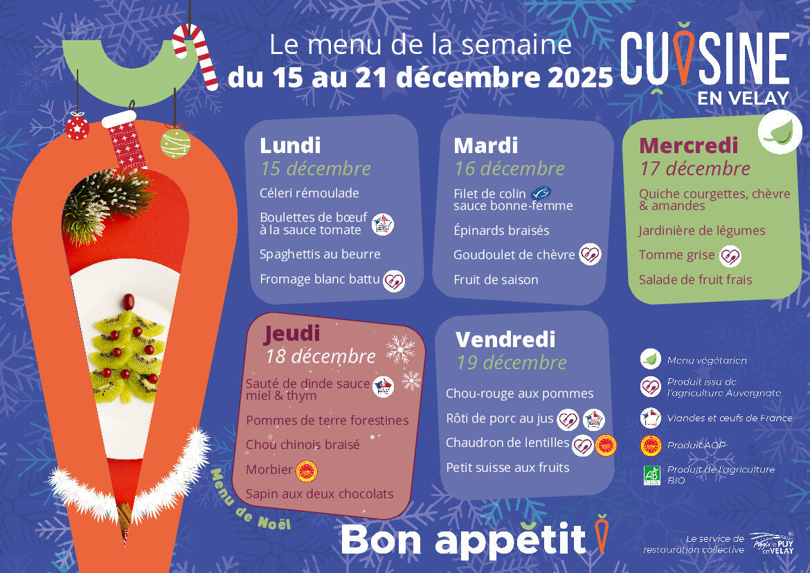 MENUS CANTINE ECOLE DU 15 AU 19 DECEMBRE