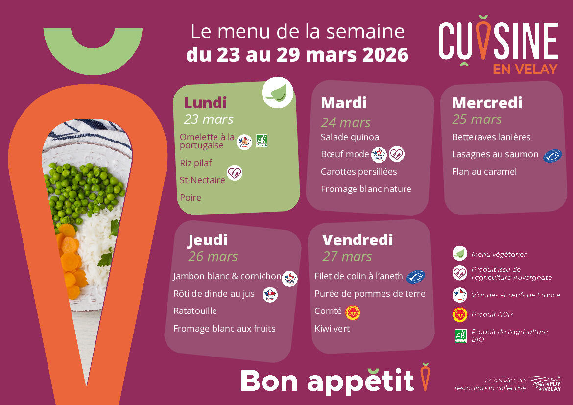 Pensez à réserver les menus cantine avant le jeudi 19 mars midi.