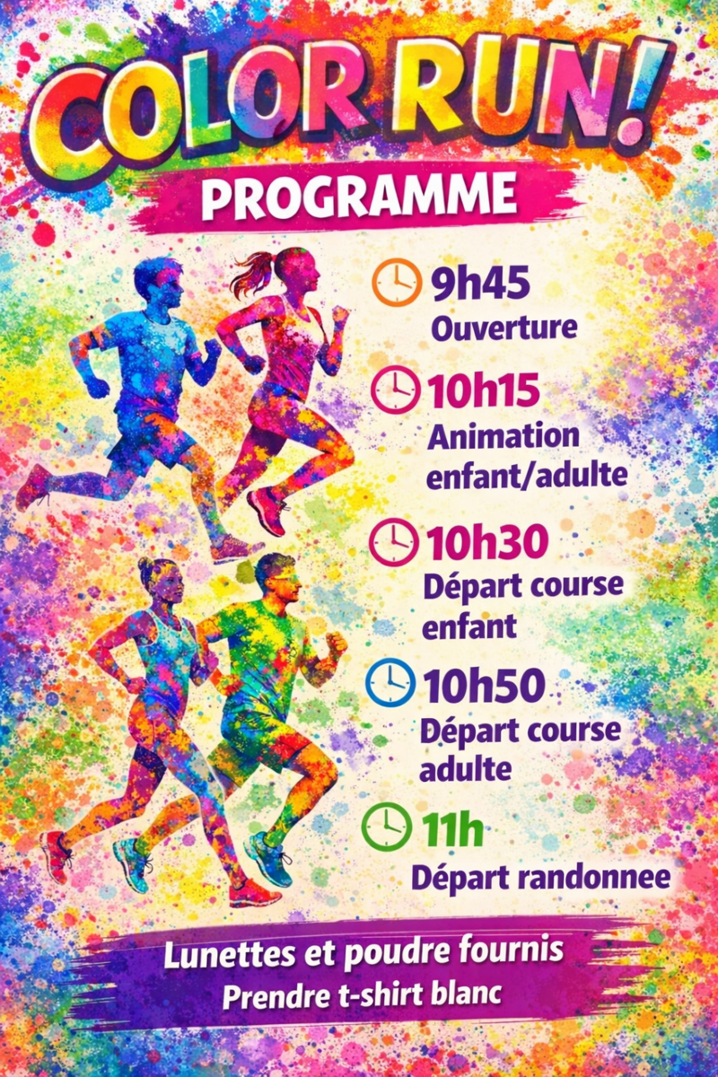 Votre mairie / Actualités / 🎨 COLOR RUN À COUBON ! 🏃‍♂️le programme complet