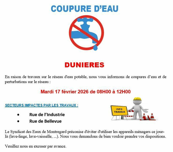COUPURE D'EAU 16 et 17/02/2026