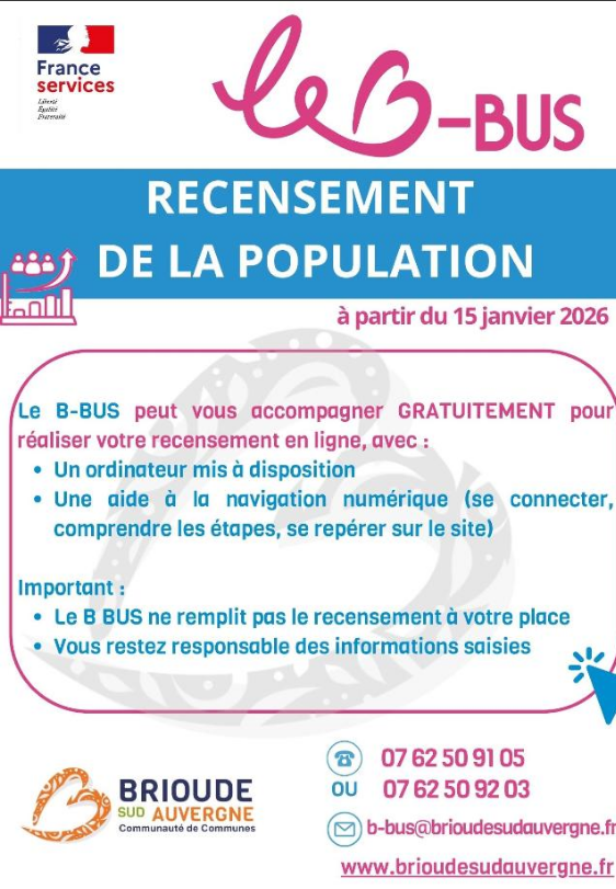 Votre mairie / Actualités / B-BUS : chèque énergie et recensement de la population