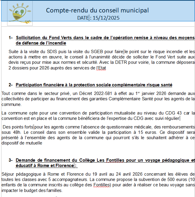Compte-rendu du conseil municipal du 15/12 25-12-22 Le compte-rendu du conseil municipal du 15 décembre 2025