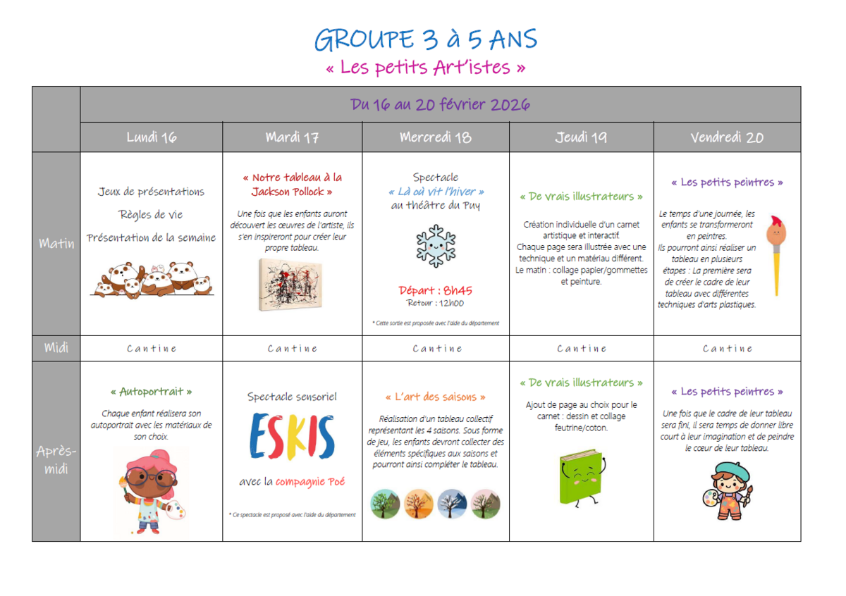 Programmes vacances des 3/5 ans et 6/14 ans.