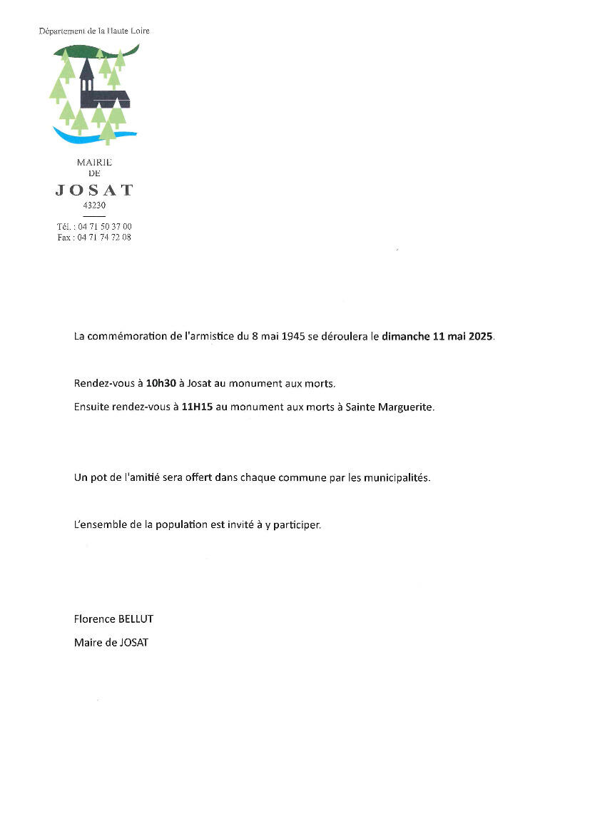 Votre mairie / Actualités / COMMEMORATION DE L'ARMISTICE DU 8 MAI 1945