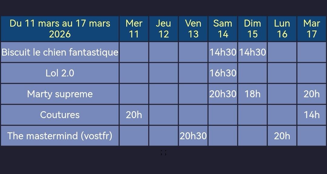 Programme d'AureCinéma du 11 au 17 mars
