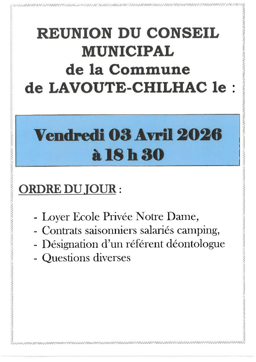 Lavoûte-Chilhac/Réunion du Conseil Municipal