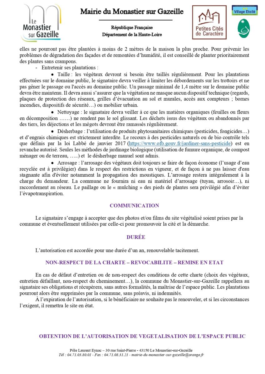 Pour accompagner les personnes intéressées et encadrer les travaux de végétalisation entrepris dans le respecter des règles d'urbanisme en vigueur, une charte de végétalisation a été éditée.