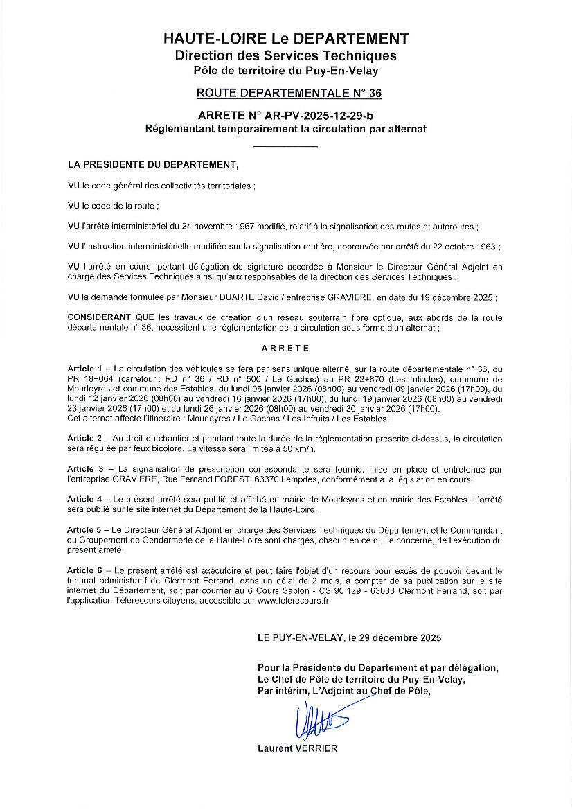 Circulation alternée sur RD500 et RD36