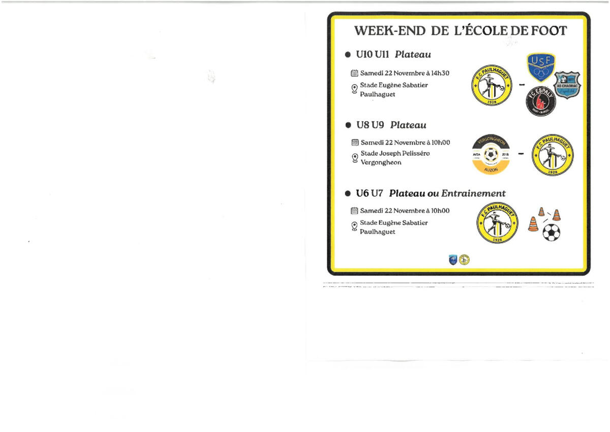 samedi 22/11/2025 : plateaux de l'Ecole de foot du FCP
