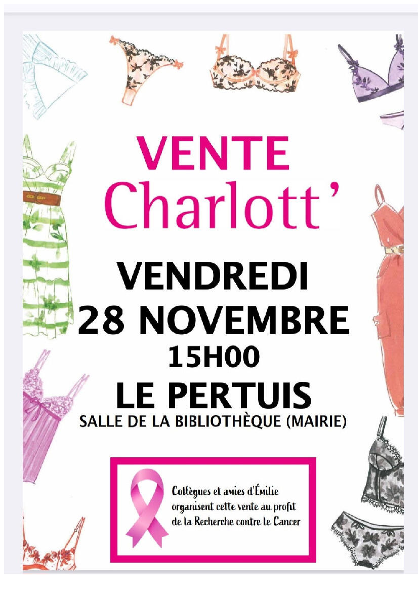 Vente de produits Charlott' par les Collègues et Amies d'Emilie au profit de la recherche contre le cancer