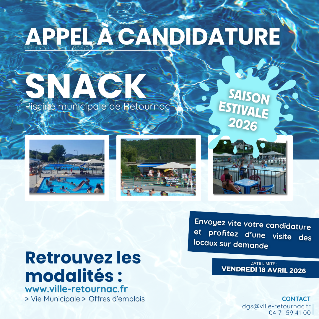 APPEL À CANDIDATURE – SNACK de la PISCINE de Retournac