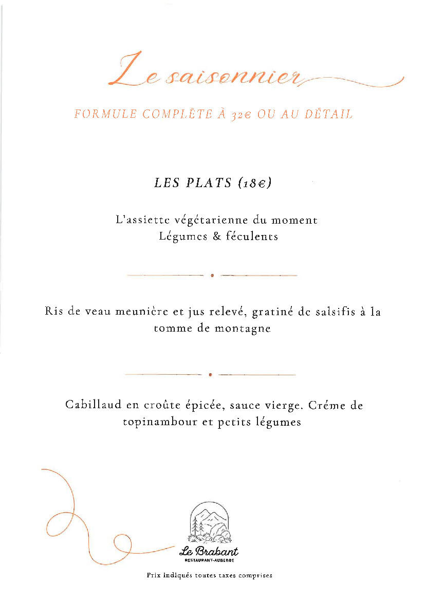 Auberge du Brabant : Nouveau Menu du Jour