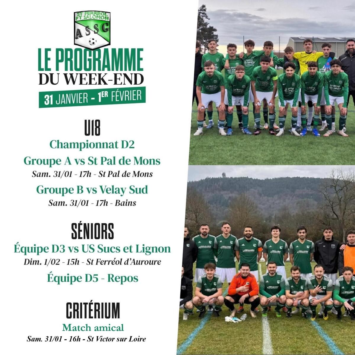 ⚽ Programme des rencontres de l'ASSG