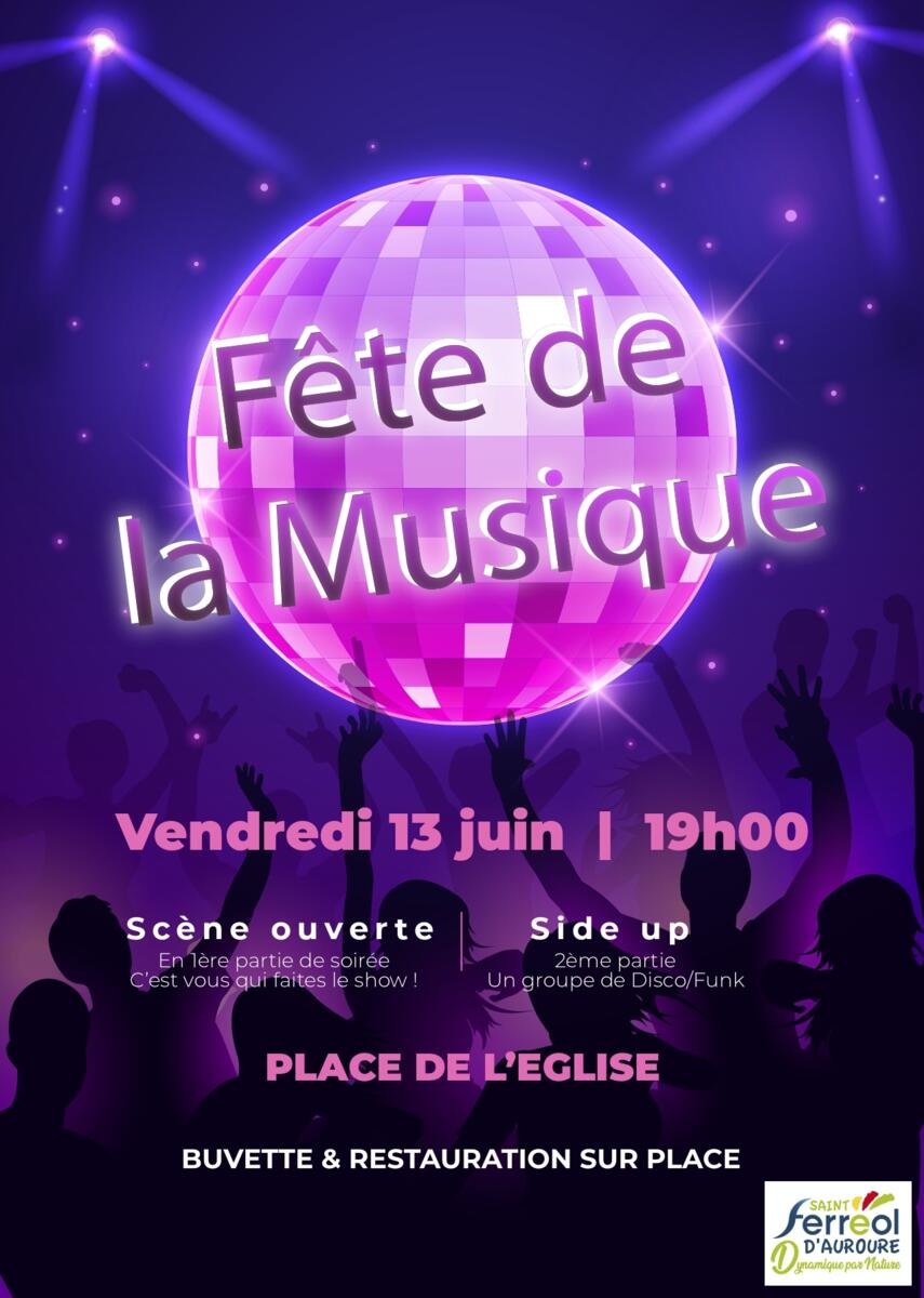 #FêteDeLaMusique #ScèneOuverte #Concert #Disco #SideUp #AmbianceFestive #ParkingÉglise #13Juin #VenezNombreux