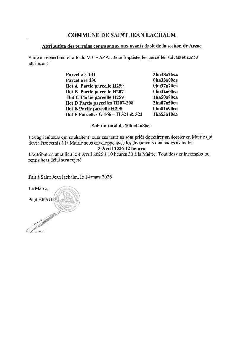 Attribution des lots communaux aux ayants droits de la section d'Arzac