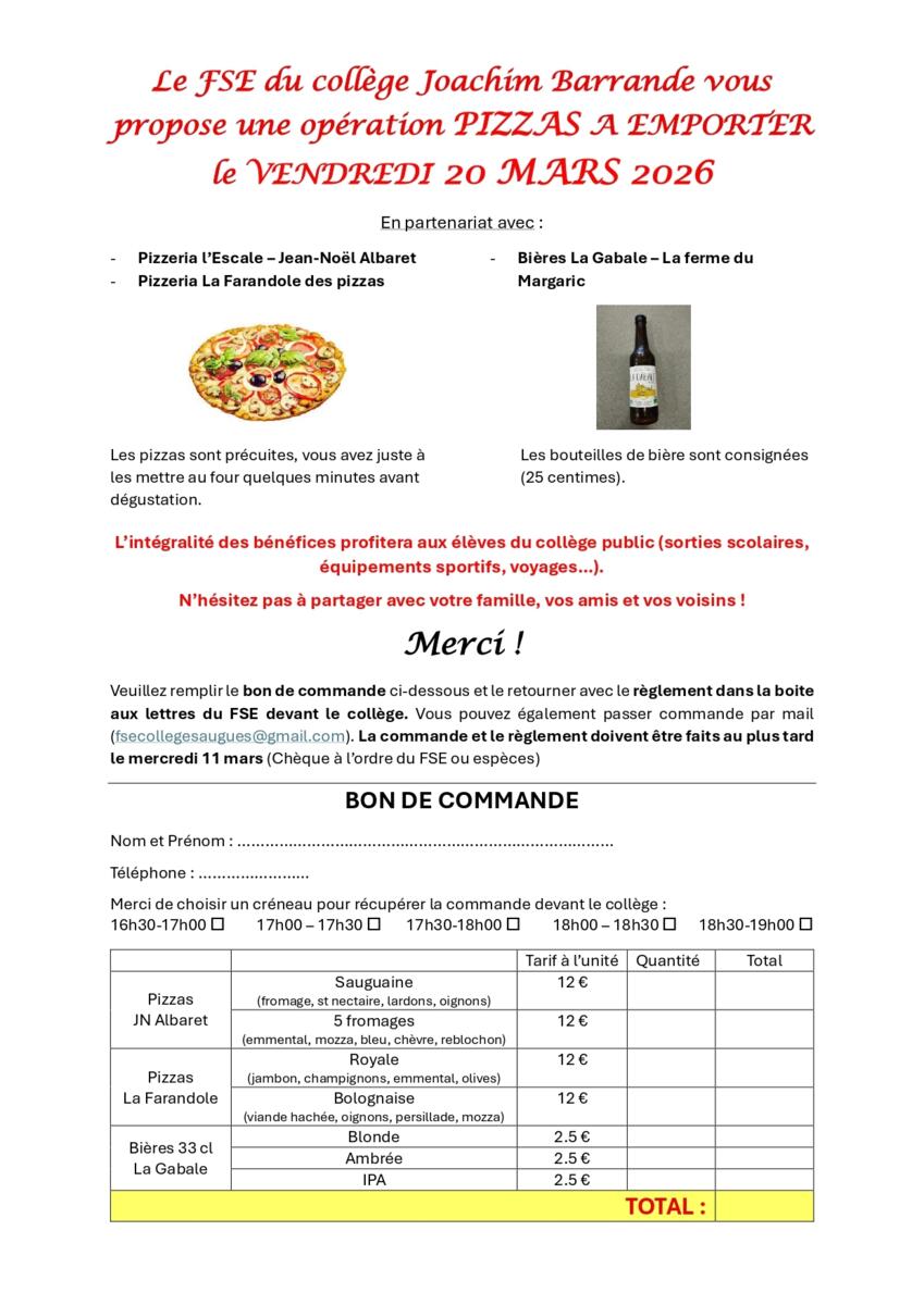 Opération Pizzas à emporter vendredi 20 mars🍕