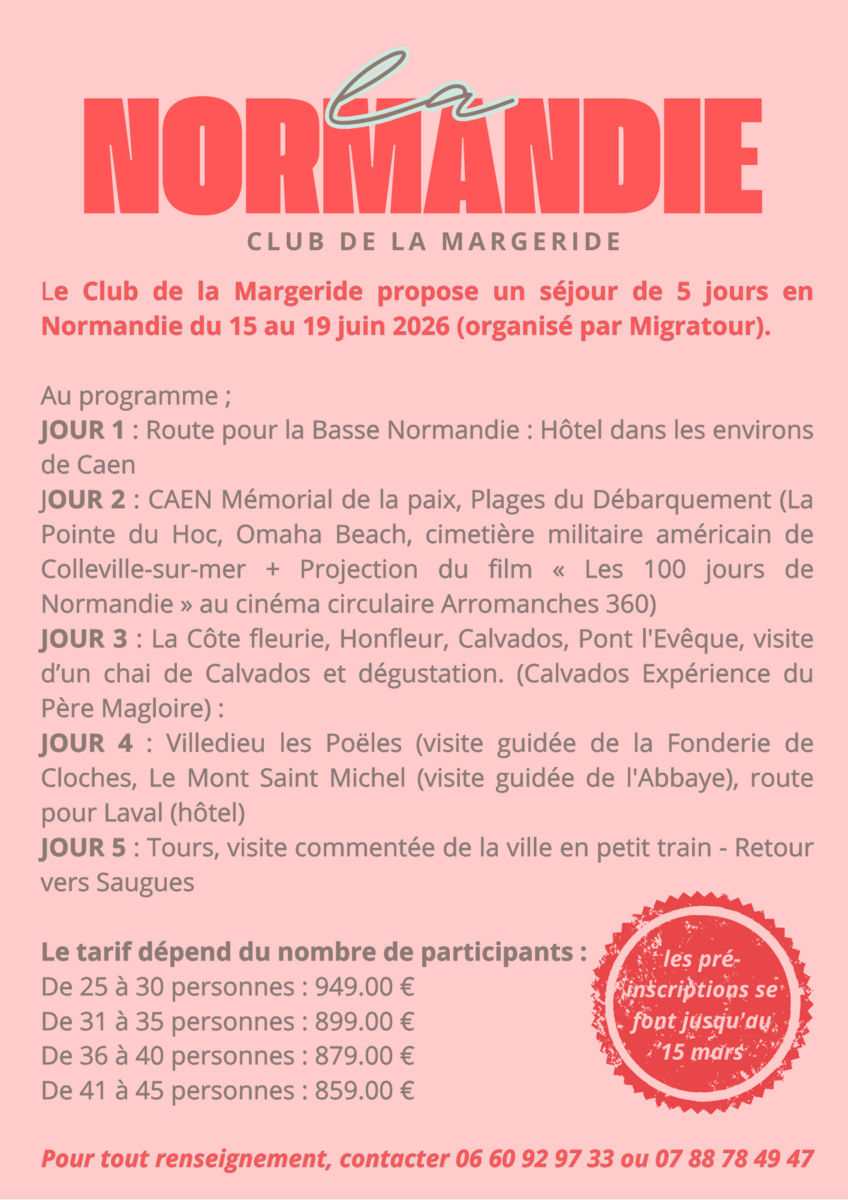 Partez avec le Club de la Margeride : Normandie et Tyrol 🚌