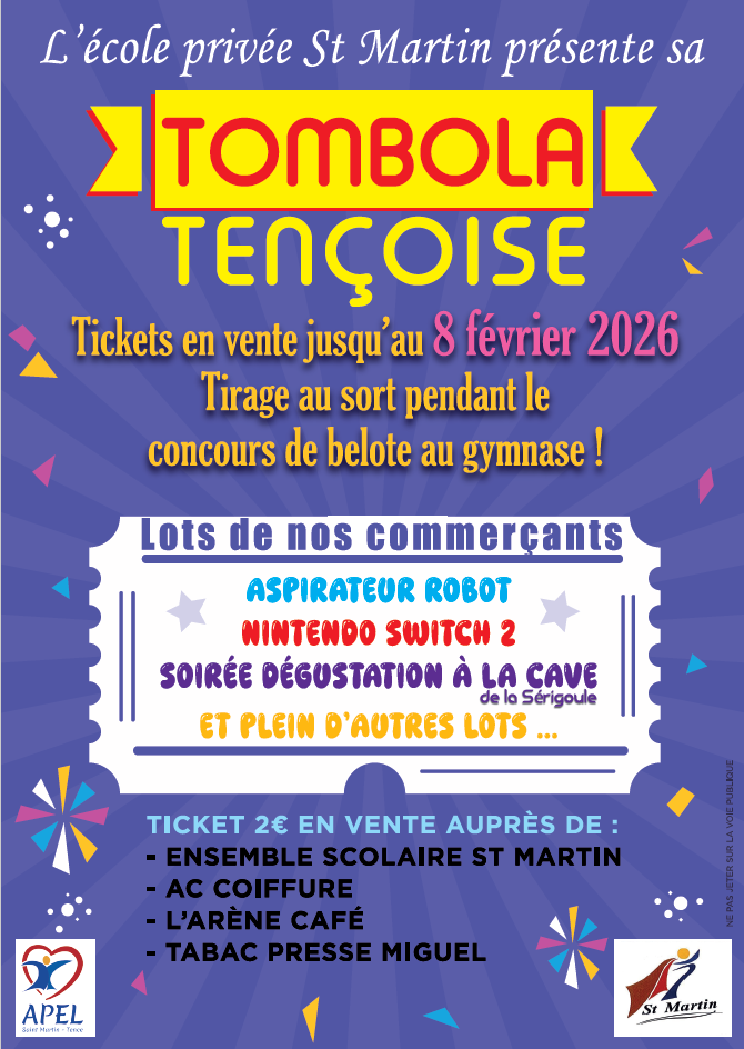 L'école privée Saint Martin présente son concours de belote et sa tombola tençoise: