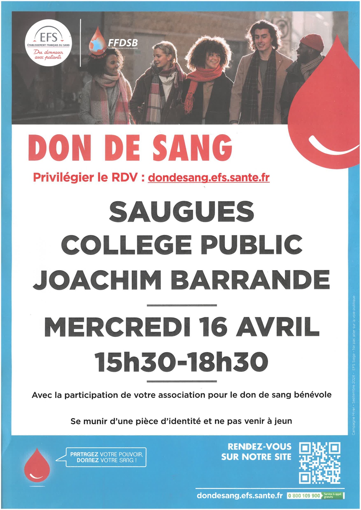 / Don du sang mercredi 16 avril à Saugues 🩸