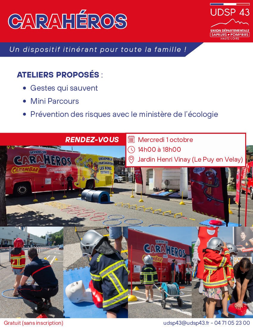 À cet effet, un bus "Carahéros" sillonne la France et fera un arrêt le mercredi 1er octobre de 14h à 18h dans le Jardin Henri Vinay, au Puy-en-Velay. Au cours de cet après-midi, plusieurs ateliers seront proposés :
