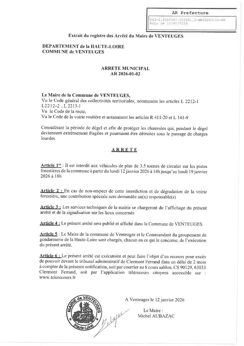 Arrêté interdisant la circulation sur les pistes forestières