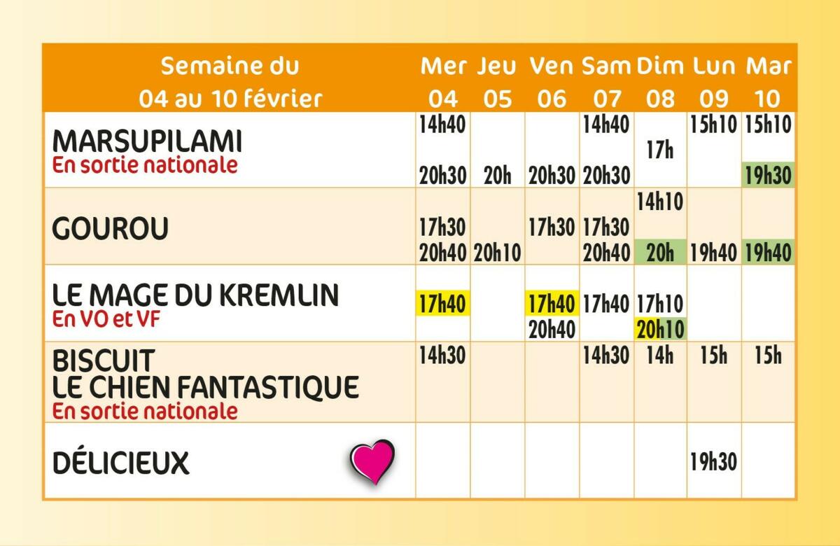 Programme ciné de la semaine