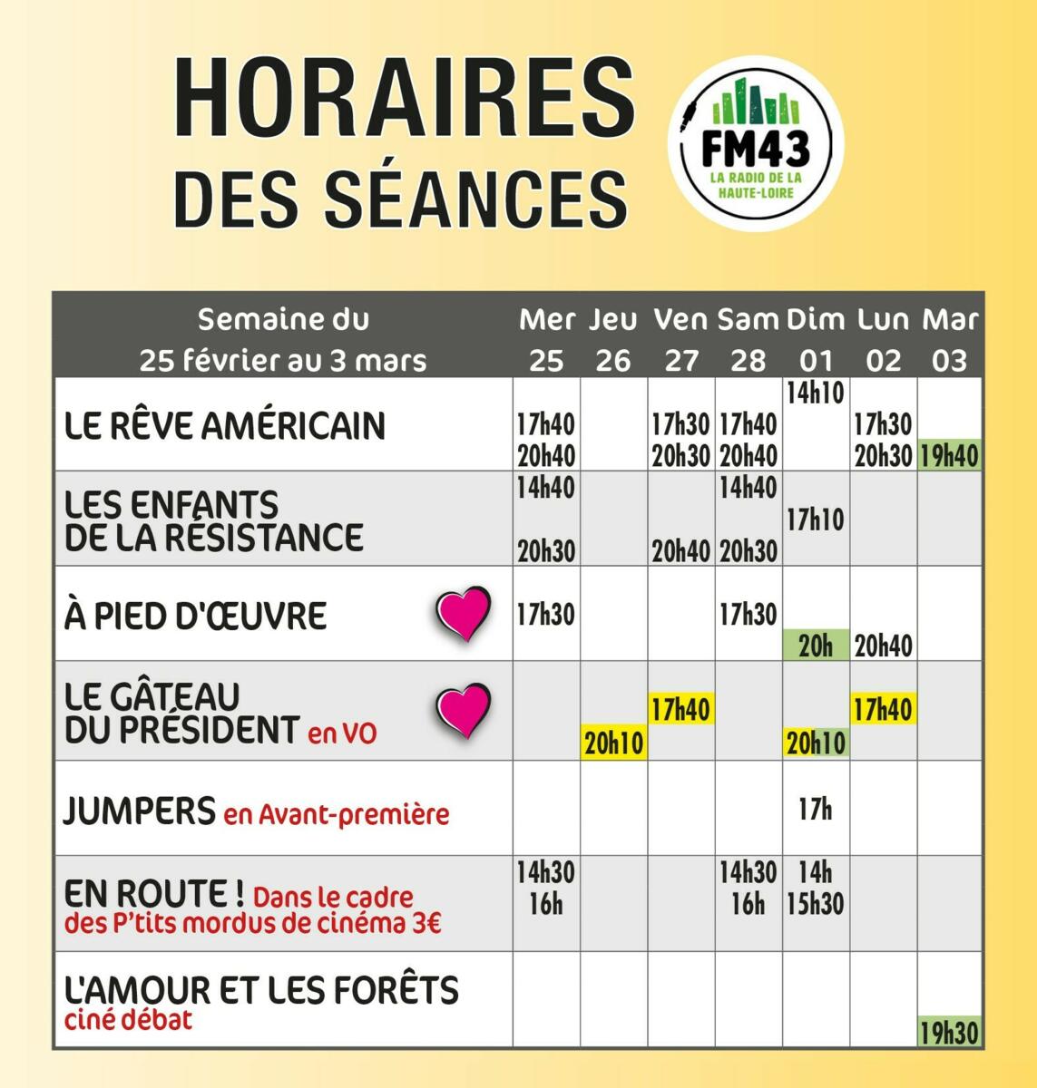 Programme ciné de la semaine