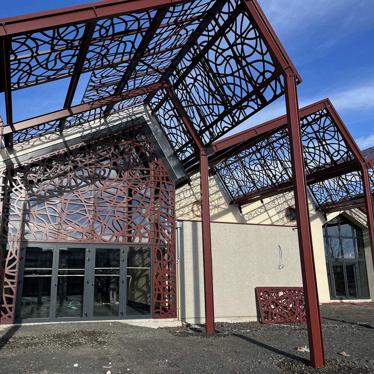 À l’extérieur, les structures métalliques ainsi que les façades ont été habillées d’un bardage évoquant l’idée du ruban, apportant une touche à la fois originale et moderne à ce bâtiment historique.