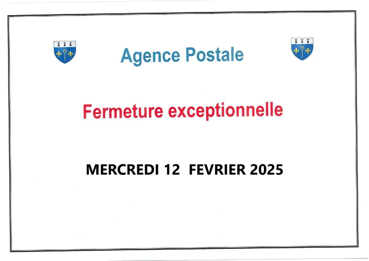AGENCE POSTALE 25-02-11 L'AGENCE POSTALE DE ST JULIEN DE VOUVANTESSERA FERMEE EXCEPTIONNELLEMENT LE MERCREDI 12 FEVRIER 2025